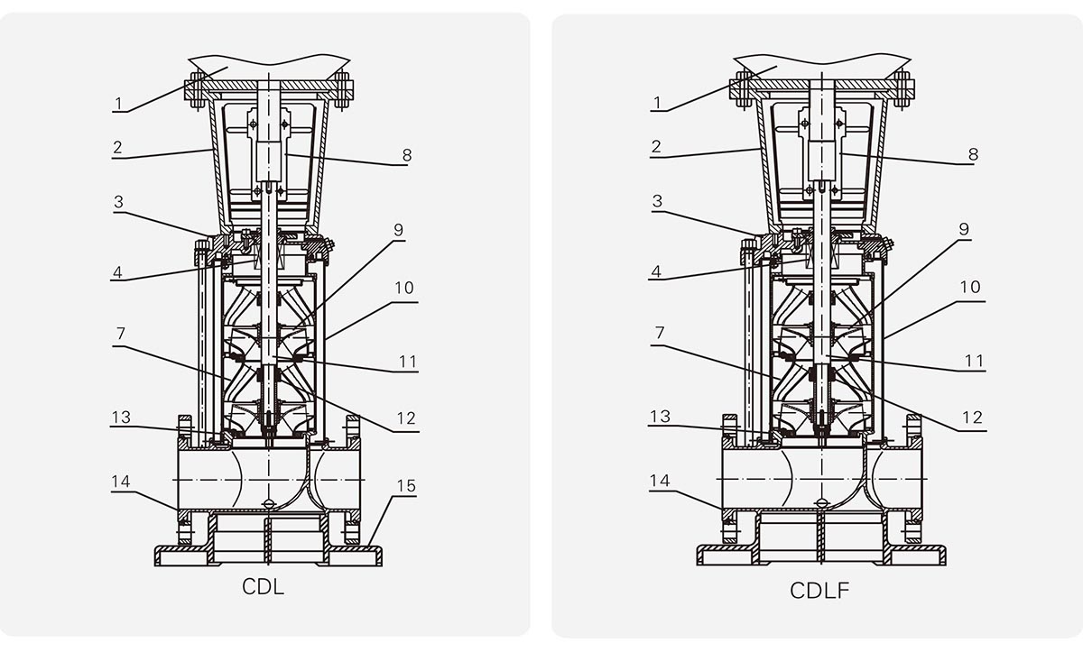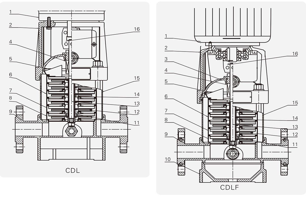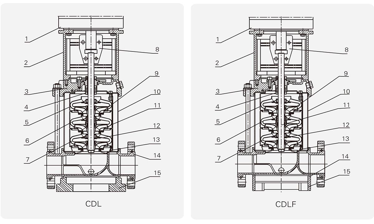 Bomba ZEN duradera y de alta calidad La bomba centrífuga vertical multietapa CDL/CDLF S.S 304 adopta un diseño vertical multietapa con puertos de entrada y salida ubicados en la misma línea horizontal, lo que la hace compacta y ahorra espacio. Ofrecemos dos versiones principales: el cabezal y la base de la bomba CDL están hechos de hierro fundido, y el impulsor y el eje están hechos de acero inoxidable; mientras que la bomba CDLF tiene todas las partes en contacto con el medio bombeado fabricadas en acero inoxidable. Todos los modelos están equipados con motores YE3 de alta eficiencia (IP55, clase de aislamiento F), rodamientos de alta calidad y sellos mecánicos resistentes al desgaste para garantizar un funcionamiento estable. Son capaces de bombear líquidos a temperaturas de -10°C a +120°C. Al elegir ZEN, elige un funcionamiento duradero y fiable.
