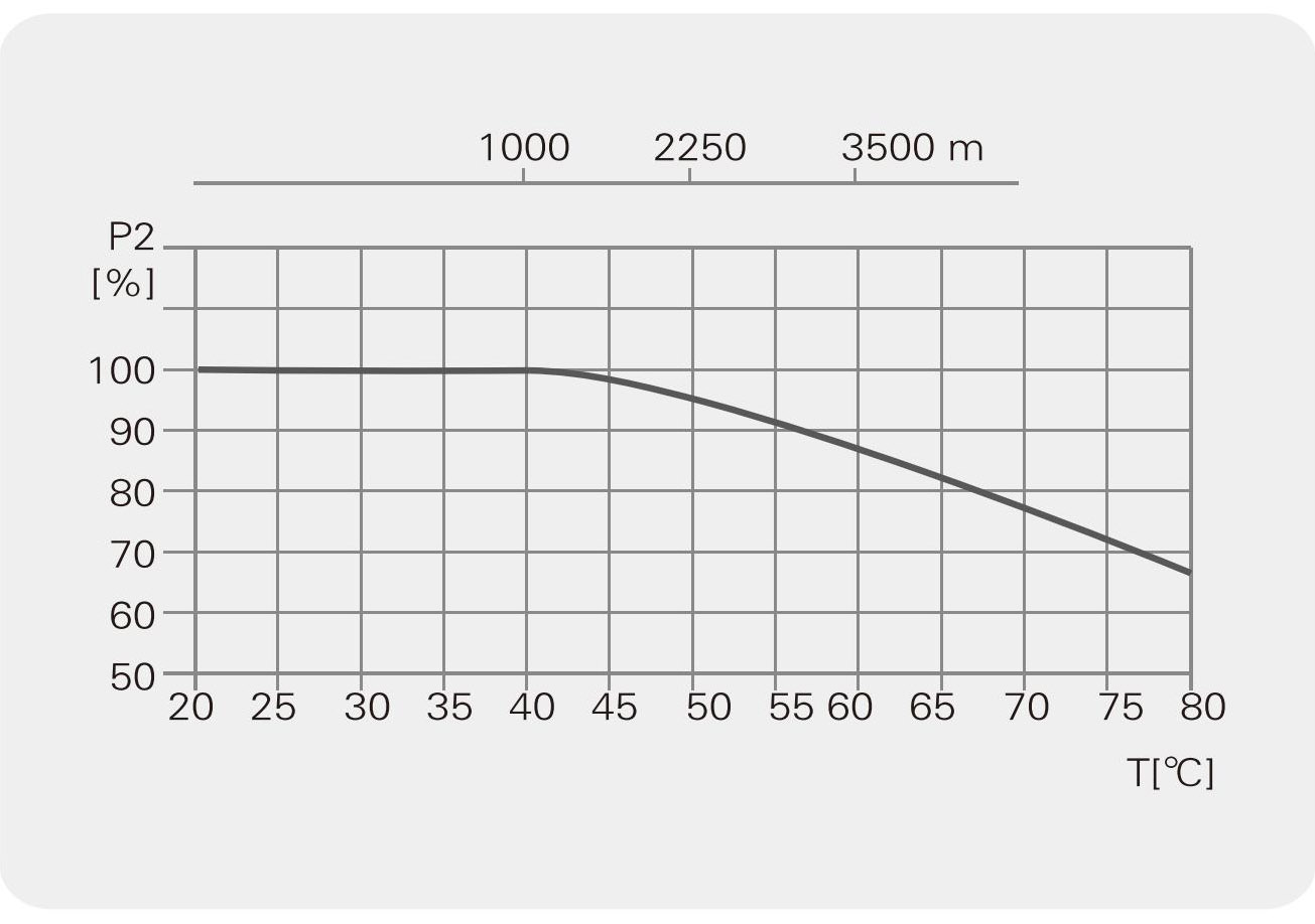 Cuando la bomba funciona a una temperatura ambiente superior a 40 C o a una temperatura ambiente de . A una altitud de más de 1 000 metros, debido a la baja densidad del aire y al efecto de enfriamiento deficiente, la potencia de salida del motor P2 se reducirá. En el caso anterior, se requiere que la potencia del motor en funcionamiento de la bomba sea grande.