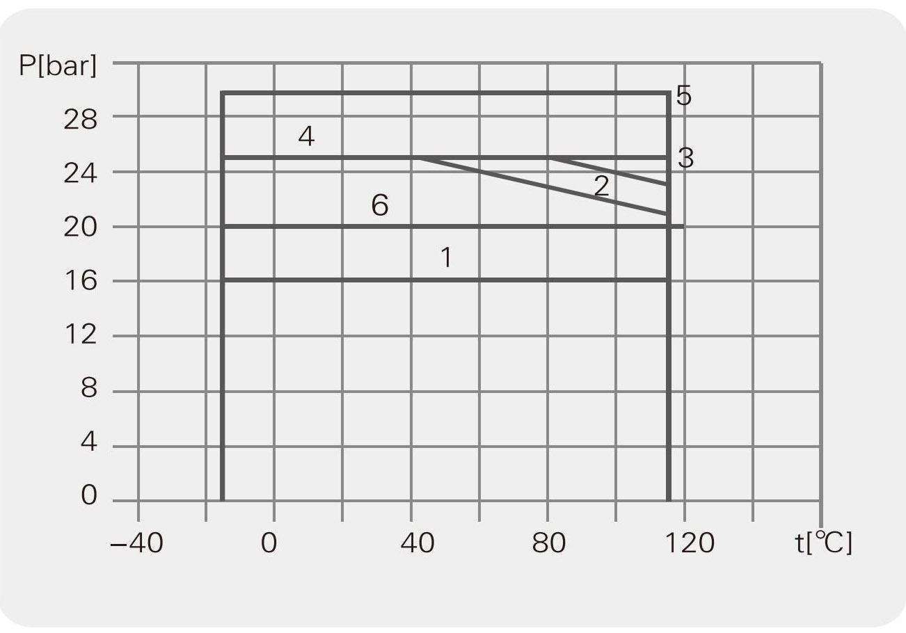La siguiente figura muestra los límites de presión y temperatura; la presión y la temperatura están dentro del rango especificado.