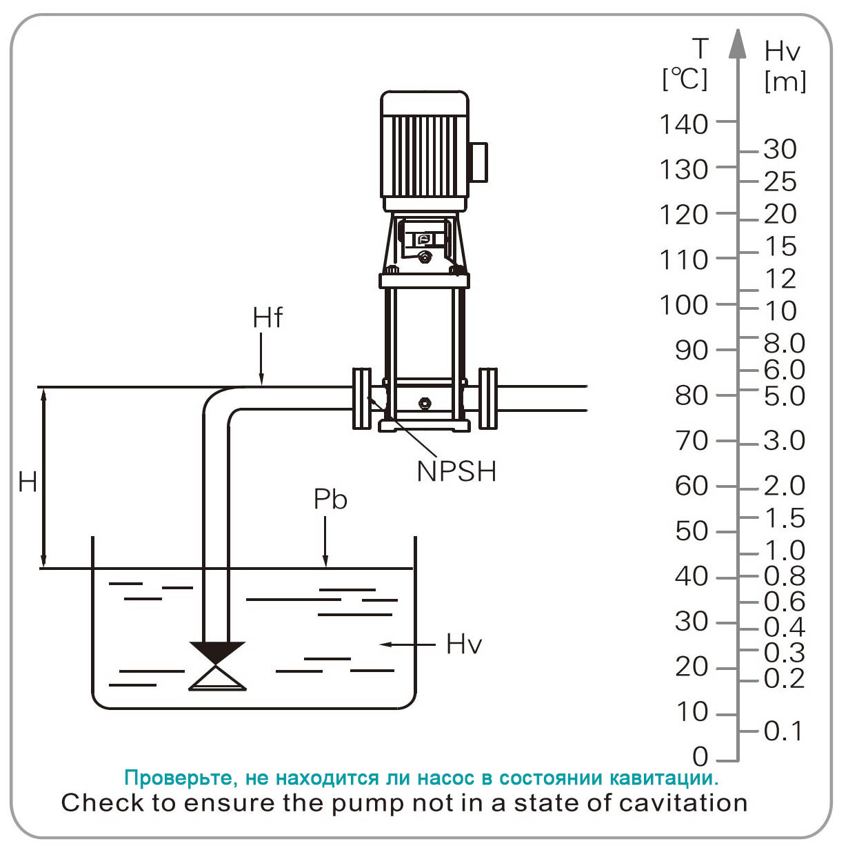 Если H рассчитывается как положительный, насос может работать при условии максимального всасывания H.