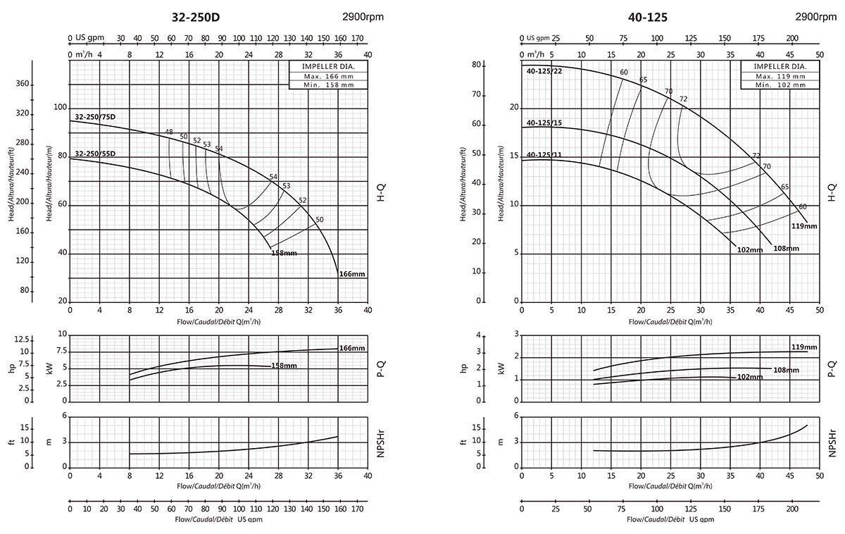 | milímetros | milímetros | kilovatios | hp | H=Cabeza(m) | |||||||||||||||||||